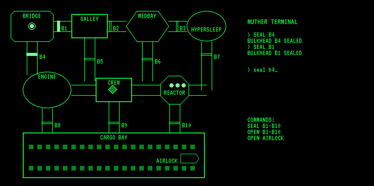 Inspired by the original Alien movie, this retro text game was created using Python and the PyGame library.